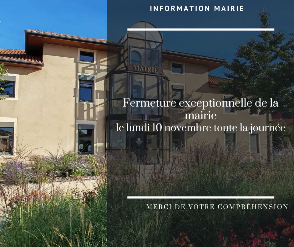 La mairie sera exceptionnellement fermée toute la journée du lundi 10 novembre 2025.